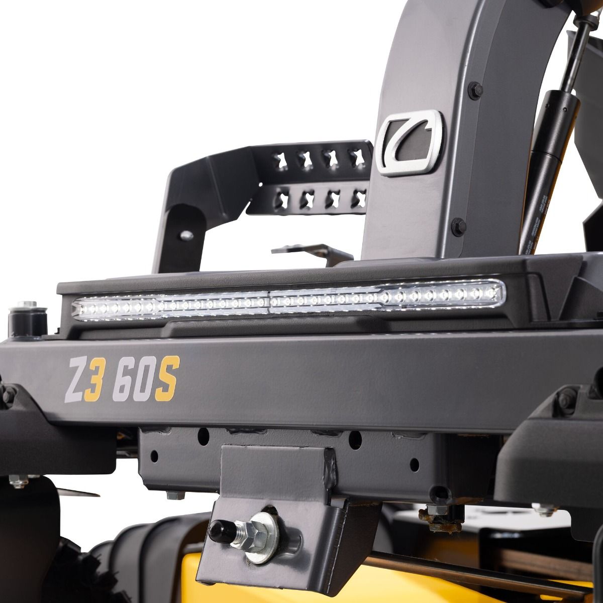 Comfort is never compromised. The Z3 60 S comes equipped with an automotive-inspired high-back seat, armrests, and a vibration-dampening rubber floor mat. The foot pedal deck lift and dial adjustment make it simple to set your preferred cutting height, while aggressive Turf Armor® tires and a bright LED headlight bar ensure reliable traction and visibility in all conditions.