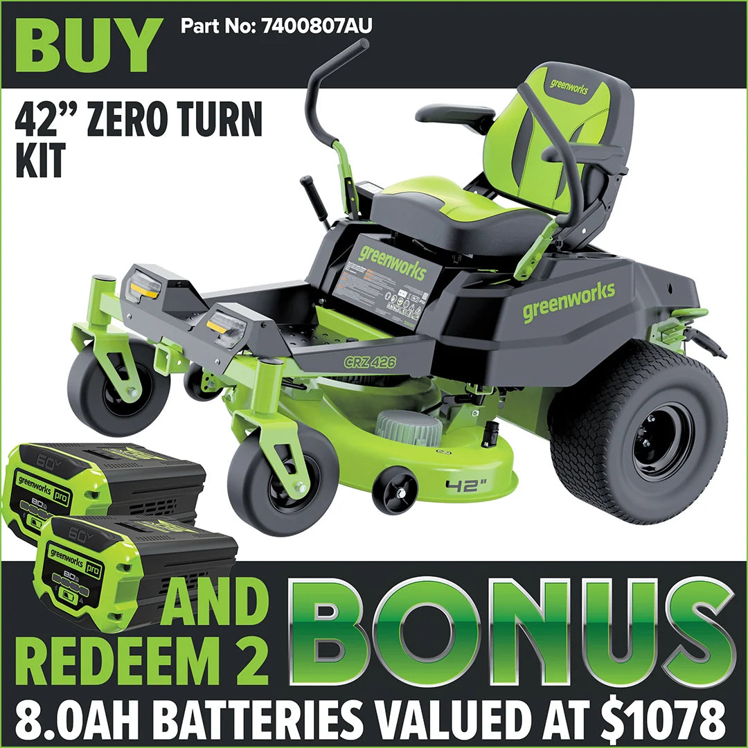 Greenworks CRZ426 60V Pro Gen 1 42" Zero Turn Mower Kit (Ex-Display Unit) [7400807AU-XD]